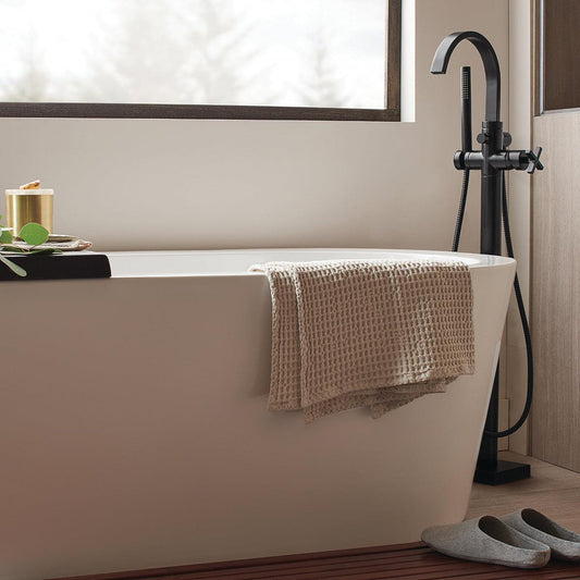 Speakman Lura 6.0 GPM Freestanding Cross Handles Matte Black Roman Tub Faucet With Handshower