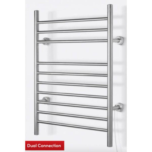 WarmlyYours Infinity 24" x 32" Brushed Stainless Steel Wall-Mounted 10-Bar Dual Connection Hardwired or Plug-In Towel Warmer