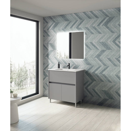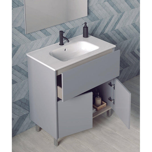 Royo Band 32" x 18" Gloss Galet Modern Freestanding Vanity With 1 Drawer and 2 Doors