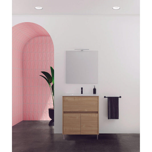Royo Mio 32" x 18" White Oak Modern Wall-mounted Vanity With 2 Drawers and Sand Handle