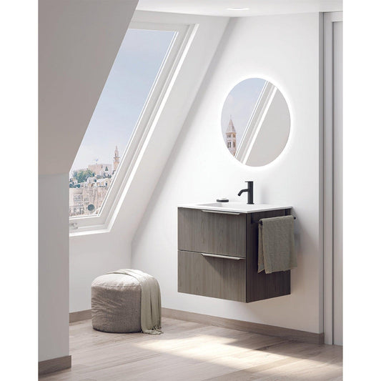 Royo Mio 24" x 18" Gray Elm Modern Wall-mounted Vanity With 2 Drawers and Sand Handle