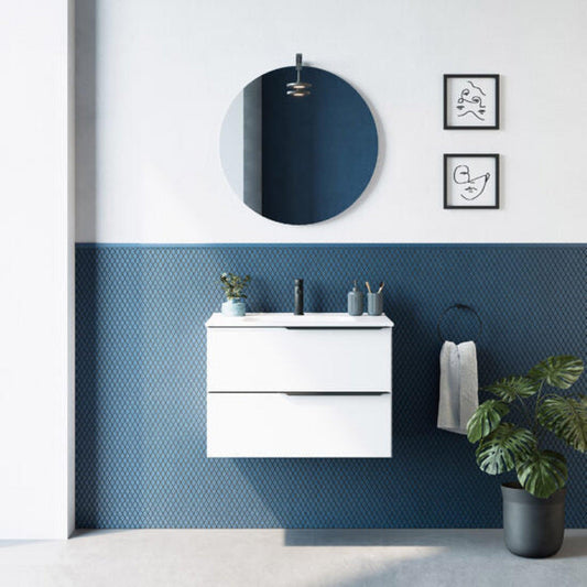 Royo Mio 32" x 18" Matt White Modern Wall-mounted Vanity With 2 Drawers and Matt Black Handle