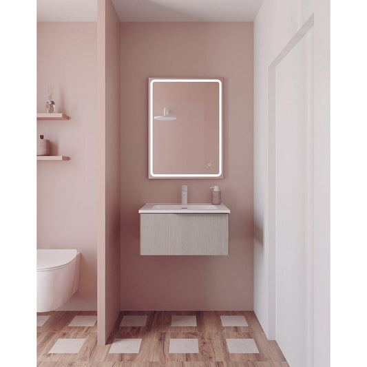 Royo Mio 24" x 18" White Oak Modern Wall-mounted Vanity With 1 Drawer and Sand Handle