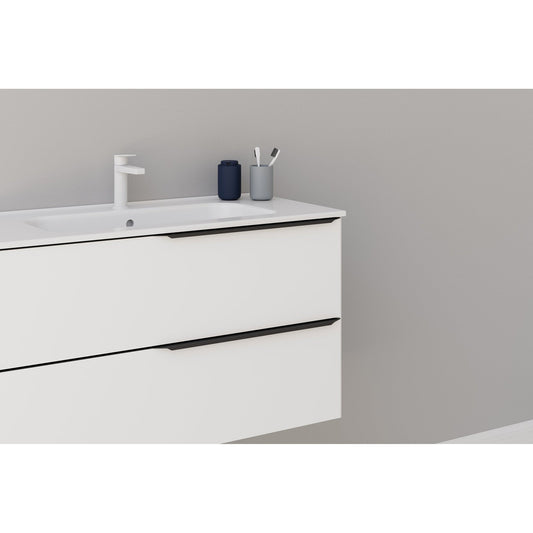 Royo Mio 40" x 18" Matt White Modern Wall-mounted Vanity With 2 Drawers and Black Handle