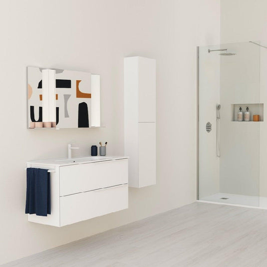 Royo Mio 40" x 18" Matt White Modern Wall-mounted Vanity With 1 Drawer and Matt Black Handle