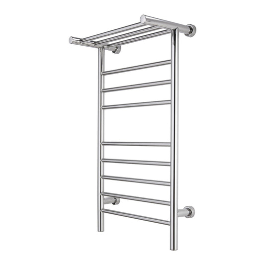 WarmlyYours Summit 20" x 36" Polished Stainless Steel Wall-Mounted 8-Bar Dual Connection Hardwired or Plug-In Towel Warmer