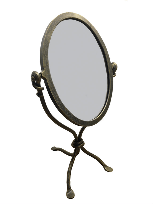 Stone County Ironworks Queensbury 10" Hand Rubbed Brass Iron Table Mirror With Pewter Iron Accent
