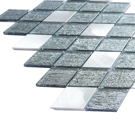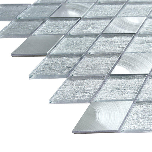 Altair Ballagh 15 pcs. Diamond Silver Gray Glass Mosaic Wall Tile