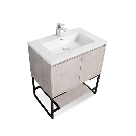 TONA Allen 30" Light Gray & White Freestanding Bathroom Vanity with Integrated Top and Sink