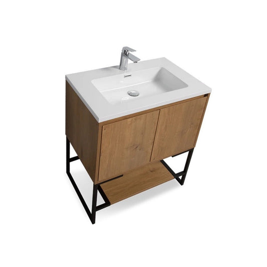 TONA Allen 30" Oak & White Freestanding Bathroom Vanity with Integrated Top and Sink