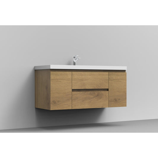 TONA Angela 48" Nature Oak Wall-Mounted Bathroom Vanity With Faux Marble Integrated Top & Single Sink