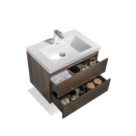 TONA Angela 30" White & Gray Oak Wall-Mounted Bathroom Vanity With Faux Marble Integrated Top & Single Sink