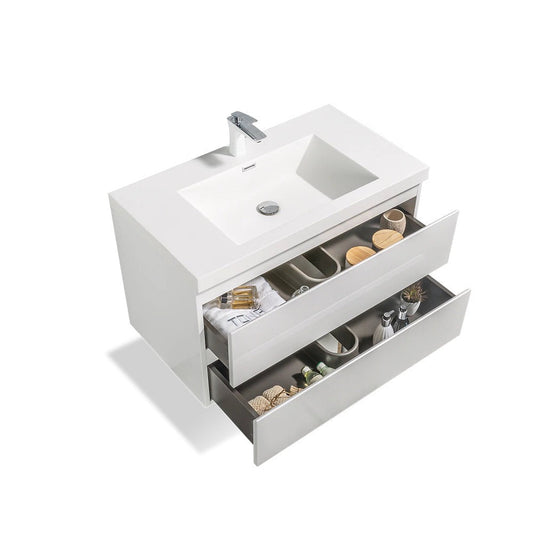 TONA Angela 36" White Wall-Mounted Bathroom Vanity With Faux Marble Integrated Top & Single Sink