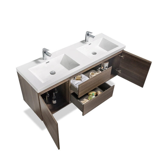 TONA Angela 60" White & Gray Oak Wall-Mounted Bathroom Vanity With Faux Marble Integrated Top & Double Sink