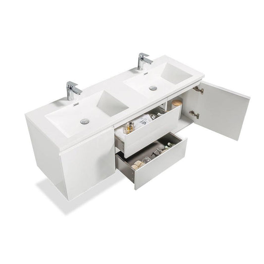 TONA Angela 60" White Wall-Mounted Bathroom Vanity With Faux Marble Integrated Top & Double Sink