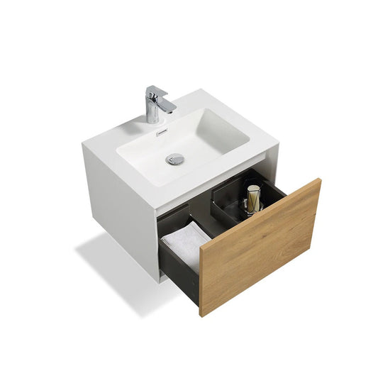 TONA Furla 24" White Oak Grain & Matte White Wall-Mounted Bathroom Vanity With Faux Marble Single Integrated Top & Sink
