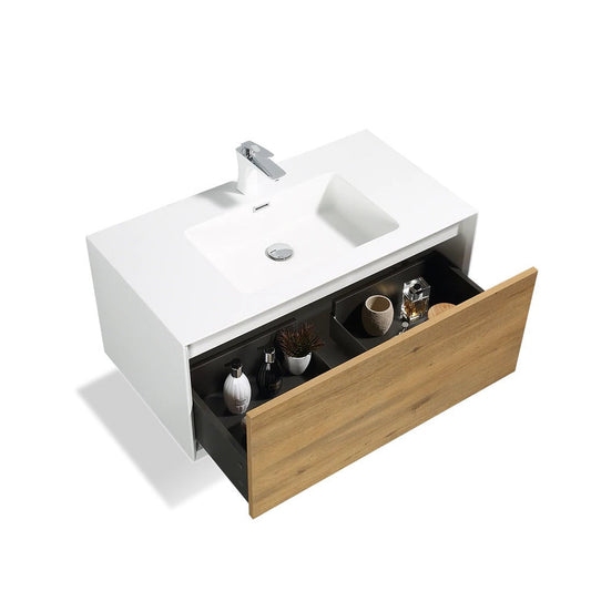TONA Furla 36" White Oak Grain & Matte White Wall-Mounted Bathroom Vanity With Faux Marble Single Integrated Top & Sink
