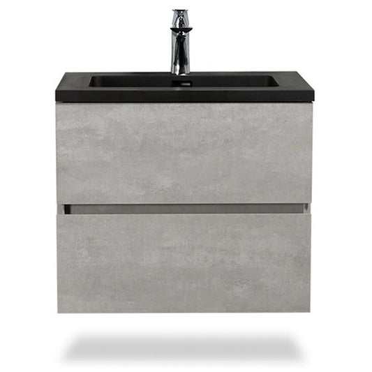 TONA Edi 24" Cement Gray & Black Wall-Mounted Bathroom Vanity With Black Quartz Integrated Top & Sink