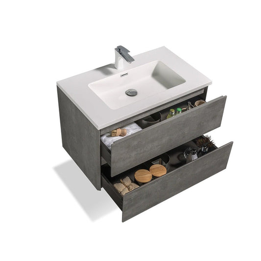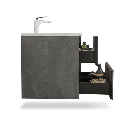 TONA Edi 30" Cement Gray & White Wall-Mounted Bathroom Vanity With White Faux Marble Integrated Integrated Top & Sink