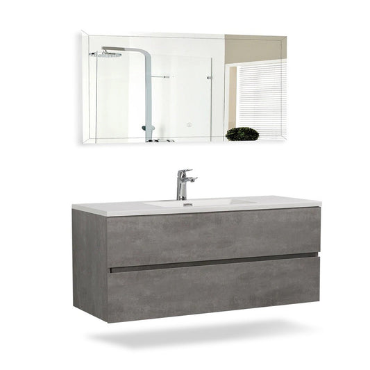 TONA Edi 48" Cement Gray & White Wall-Mounted Bathroom Vanity With White Faux Marble Integrated Integrated Top & Sink