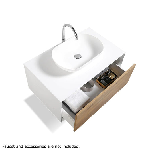 TONA Fiona 36" White Oak Grain & Matte White Wall-Mounted Bathroom Vanity Set With Lacquered MDF Countertop and Single Vessel Sink