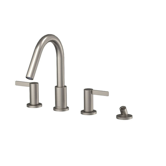 TOTO GF Brushed Nickel Double-Handle Deck-Mounted Lever Handles Roman Tub Filler With Handshower Outlet