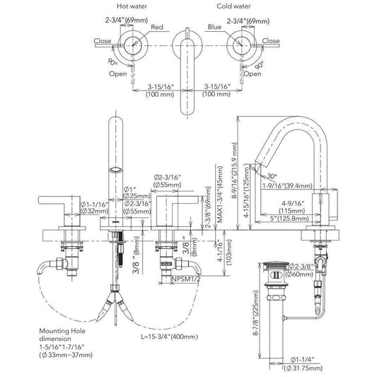TOTO GF Polished Nickel 1.2 GPM Two-Handle Widespread Lever Handle Bathroom Sink Faucet With Drain Assembly