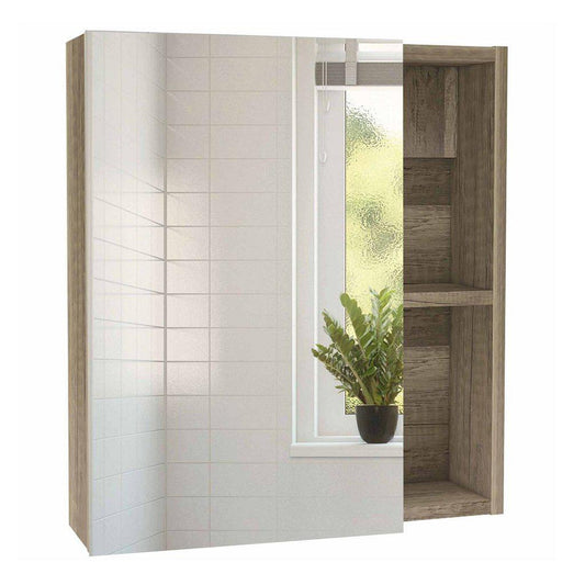 TUHOME Labelle 18" x 20" Weathered Oak Wall-Mounted Mirror Medicine Cabinet With 2 Open Shelves