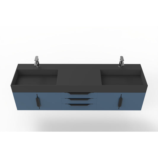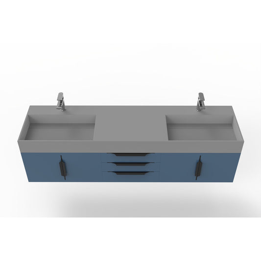 Castello USA Amazon 72" Blue Double Vanity Set With Gray Top and Black Handles