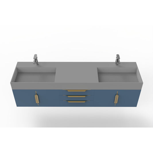 Castello USA Amazon 72" Blue Double Vanity Set With Gray Top and Gold Handles