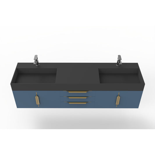 Castello USA Amazon 72" Blue Double Vanity Set With Black Top and Gold Handles