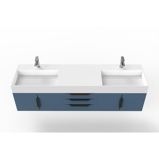 Castello USA Amazon 72" Blue Double Vanity Set With White Top and Black Handles