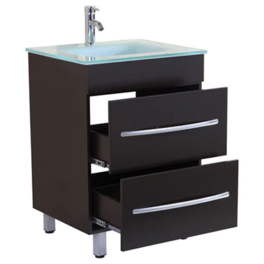 LessCare 24" Black Vanity Sink Base Cabinet with Mirror - Style 4