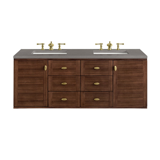 James Martin Vanities Amberly 60" Mid-Century Walnut Double Vanity With 3cm Grey Expo Top