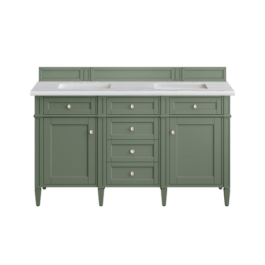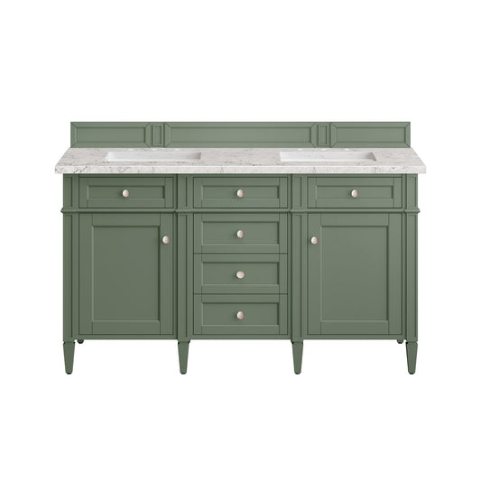 James Martin Vanities Brittany 60" Smokey Celadon Double Vanity With 3cm Eternal Jasmine Pearl Top