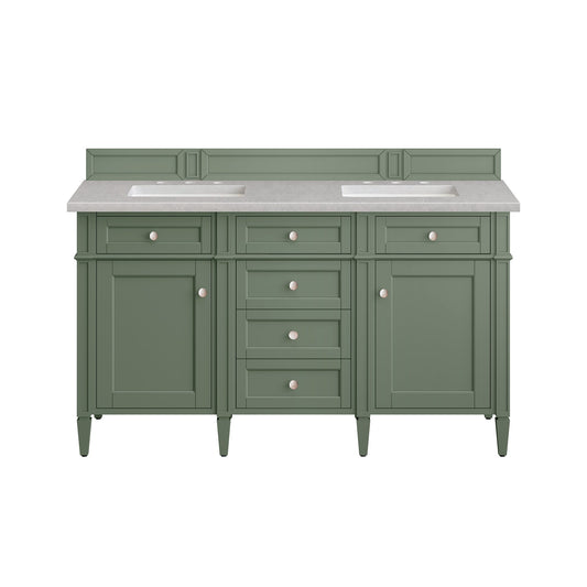 James Martin Vanities Brittany 60" Smokey Celadon Double Vanity With 3cm Eternal Serena Top