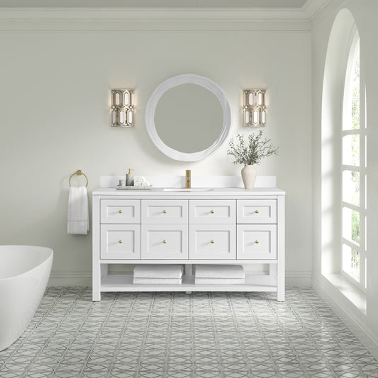 James Martin Vanities Breckenridge 60" Bright White Single Vanity With 3cm Eternal Jasmine Pearl Quartz Top