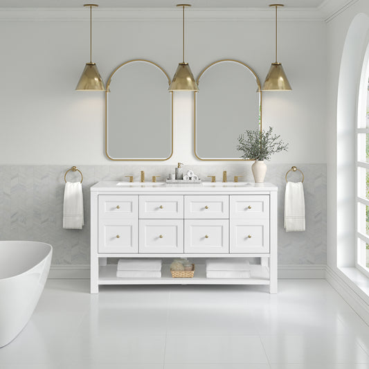 James Martin Vanities Breckenridge 60" Bright White Double Vanity With 3cm Eternal Marfil Quartz Top