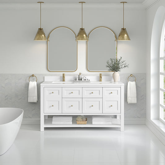 James Martin Vanities Breckenridge 60" Bright White Double Vanity With 3cm Eternal Jasmine Pearl Quartz Top