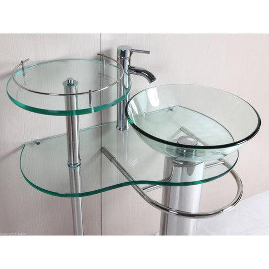 Costway 29" Bathroom Vanities Pedestal Vessel Sink Bowl Glass Modern Furniture Set
