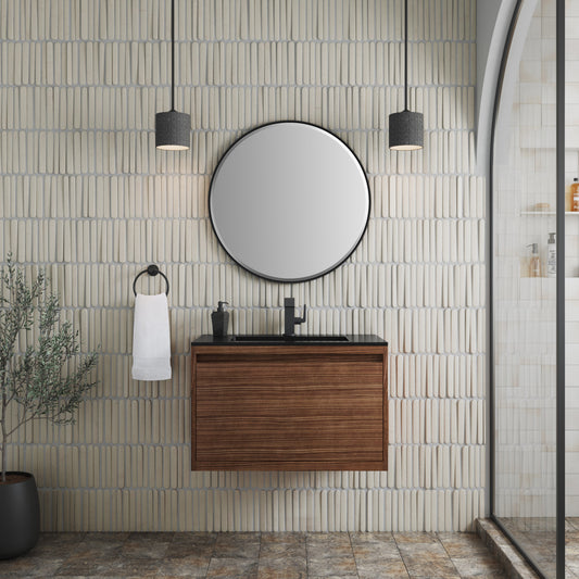 James Martin Vanities Mantova 31.5" Mid-Century Walnut and Matte Black Base Single Vanity With Charcoal Black Composite Stone Top