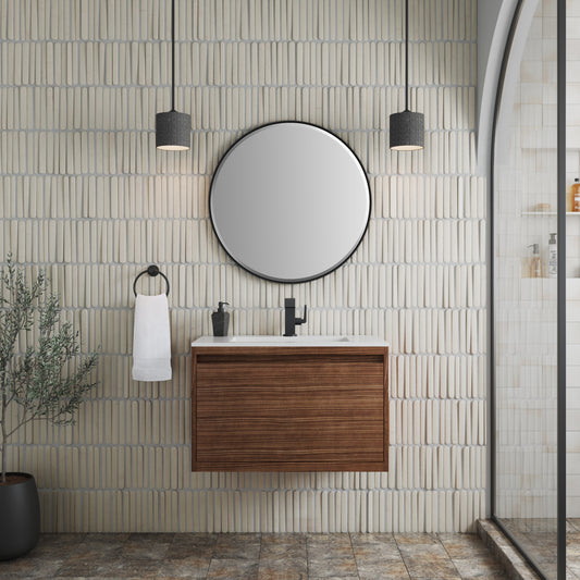 James Martin Vanities Mantova 31.5" Mid-Century Walnut and Matte Black Base Single Vanity With Glossy White Composite Stone Top