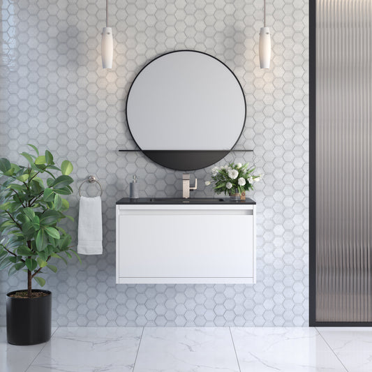 James Martin Vanities Mantova 35.4" Glossy White and Matte Black Base Single Vanity With Glossy White Composite Stone Top