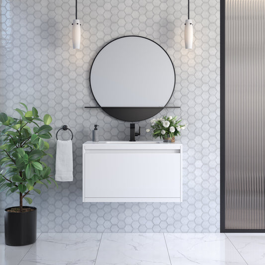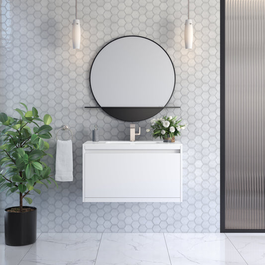 James Martin Vanities Mantova 35.4" Glossy White Single Vanity With Glossy White Composite Stone Top