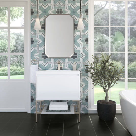 James Martin Vanities Mantova 31.5" Glossy White and Brushed Nickel Base Single Vanity Cabinet