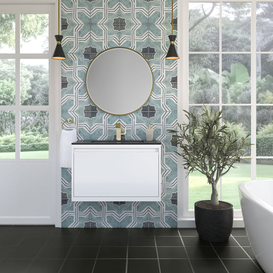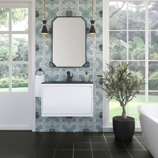 James Martin Vanities Mantova 31.5" Glossy White and Matte Black Base Single Vanity With Charcoal Black Composite Stone Top