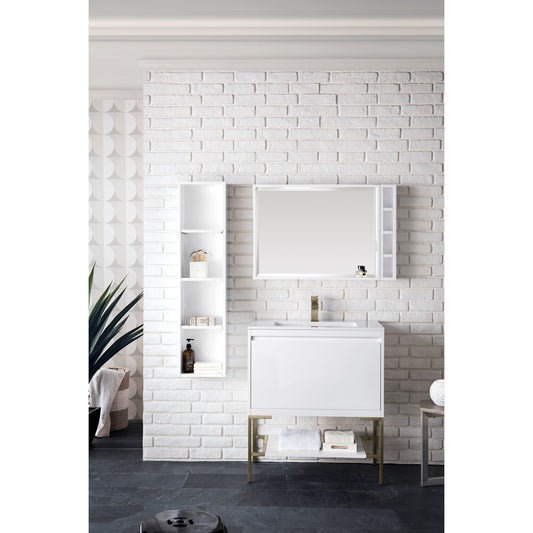 James Martin Vanities Mantova 31.5" Glossy White and Champagne Brass Base Single Vanity Cabinet