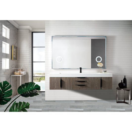 James Martin Vanities Columbia 72" Ash Gray and Matte Black Single Wall Mount Vanity With Glossy White Composite Stone Top