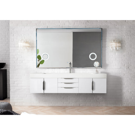 James Martin Vanities Columbia 72" Glossy White and Brushed Nickel Single Wall Mount Vanity With Glossy White Composite Stone Top