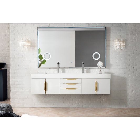 James Martin Vanities Columbia 72" Glossy White and Radiant Gold Double Wall Mount Vanity With Glossy White Composite Stone Top